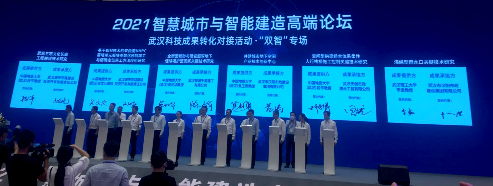 (通讯员:刘浩、张美霞)9月24日,开云中国院长焦玉勇教授应邀率队出席2021智慧城市与智能建造(“双智”)高端论坛。开幕式“武汉科技成果转化对接活动 双智专场”上,焦玉勇带领我院蔡记华、吴文兵、林俊涛、刘浩4位老师分别与武汉市汉阳市政建设集团有限公司、武汉市誉城千里有限公司、武汉市城市铁路建设投资开发有限公司签订了共建技术创新中心、人才培养与科技成果转化合作协议。我院与武汉市相关部门和企业开展深度合作,将为湖北省“一主引领、两翼驱动、全域协同”的区域发展布局,和武汉建设“宜居城市、韧性城市、智慧城市、绿色城市、人文城市”的重大需求提供技术和人才支持。