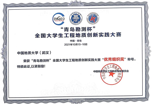 (通讯员:葛云峰)2021年10月15日,在“青岛勘测杯”全国大学生工程地质创新实践大赛中,我院学子取得一、二、三等奖各1项,学校荣获“优秀组织奖”的优异成绩。
