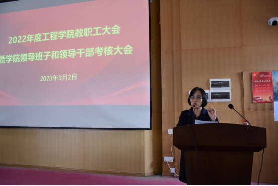 院党委副书记、院长焦玉勇作学院工作报告,代表学院领导班子从党建工作、学科建设、人才培养、科学研究等方面汇报了学院的工作情况和亮点成果,他重点向全院教职员工介绍了2022年学院科研项目取得的突出成果,全年合同经费增涨了72.6%,到涨经费增涨了26.7%,全院形成了浓厚的科学研究氛围。他强调,全院要继续凝聚合力、齐心协力推动学院更好更快发展,努力续写学院新的辉煌。