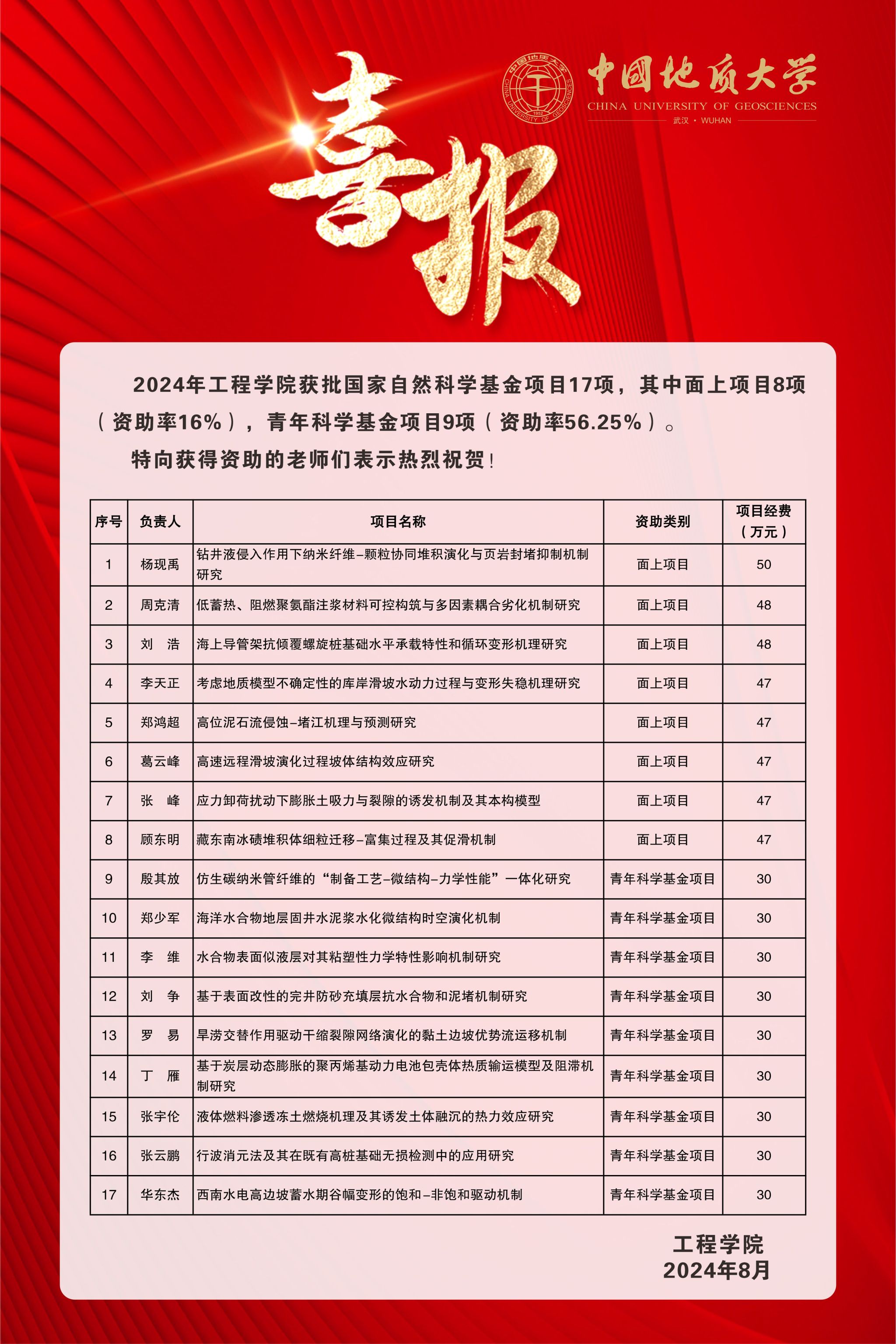 喜报:开云中国获批国家自然科学基金项目17项