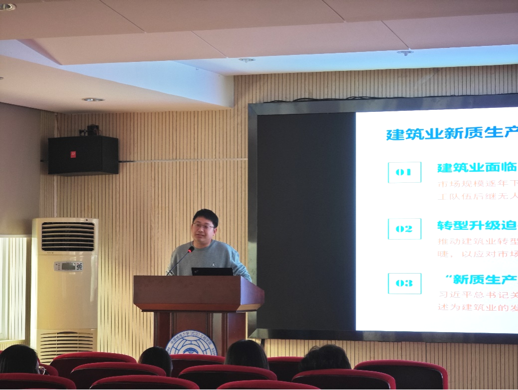 孙廉威院长以“企业视角下建筑业新质生产力核心要素浅析”为主题,首先通过行业实例说明了当前建筑行业和土木工程行业的发展现状,并且对企业发展的瓶颈进行了阐述。随后,从企业角度提出了发展新质生产力的思考,新质生产力是推动建筑业转型发展的内在需求,也是推动建筑业颠覆性变革的重要着力点。孙廉威院长结合他自身及团队在企业进行科技创新工作实例,分析提出了建筑业新质生产力的核心要素。最后,孙廉威院长向同学们分享了企业对复合型人才的迫切需求,并详细讲解了如何通过培养多领域技能和知识,将自己塑造成为企业急需的复合型人才,从而增强个人的职业竞争力。