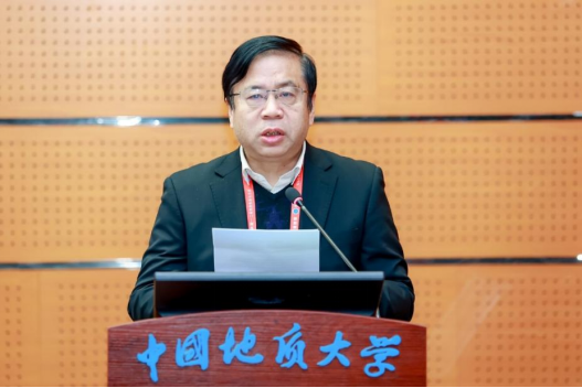 中国工程院院士、宁波大学杜时贵教授致辞。他深情追忆了自己在地大求学、工作期间与晏同珍先生接触所感受到的大师风范,表达了对先生的深切缅怀与崇高敬意。他号召与会学者以晏同珍先生为榜样,以纯粹的热爱与刻苦钻研在科学研究的道路上锐意进取,勇攀科学高峰,推动工程地质学科理论与实践取得新突破。
