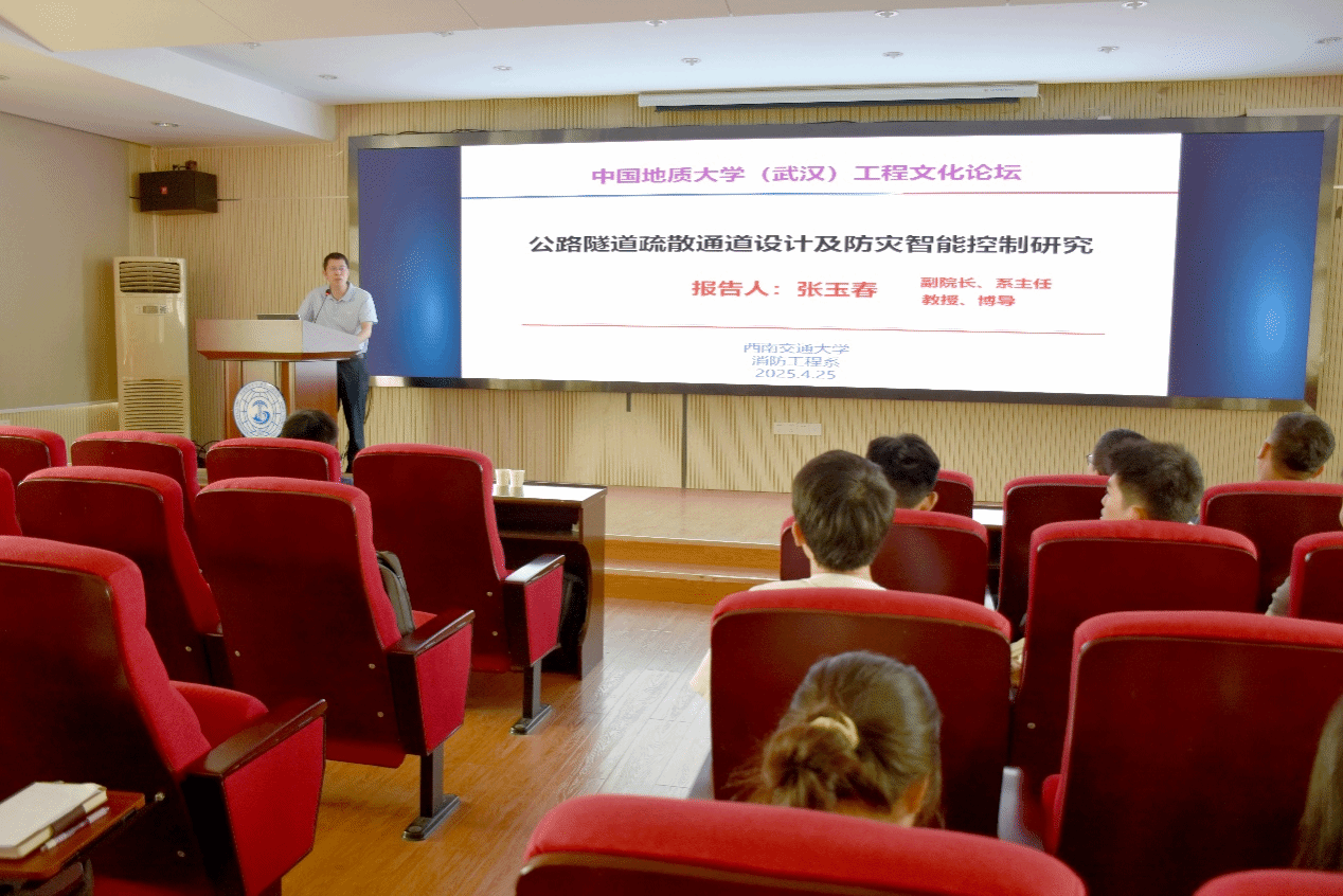 张玉春教授作了题为“公路隧道疏散通道设计及防灾智能控制研究”的学术讲座,讲座首先介绍了近年来公路隧道的火灾风险,分析了公路隧道疏散逃生通道建设现状,提出了公路隧道疏散时间计算方法和横/竖向等效设计模型。其次结合隧道火灾烟气蔓延演化特征,分析了烟气对能见度的遮光效应,分析了能见度、声光等影响下的人员疏散行为,通过实验与模拟相结合方式获取了公路隧道横/竖向疏散通道通行能力基础参数。最后,张玉春教授还介绍公路隧道智能联动控制技术和应用情况,为公路隧道人员疏散通道设计和防灾救援等工程提出了新的解决思路。