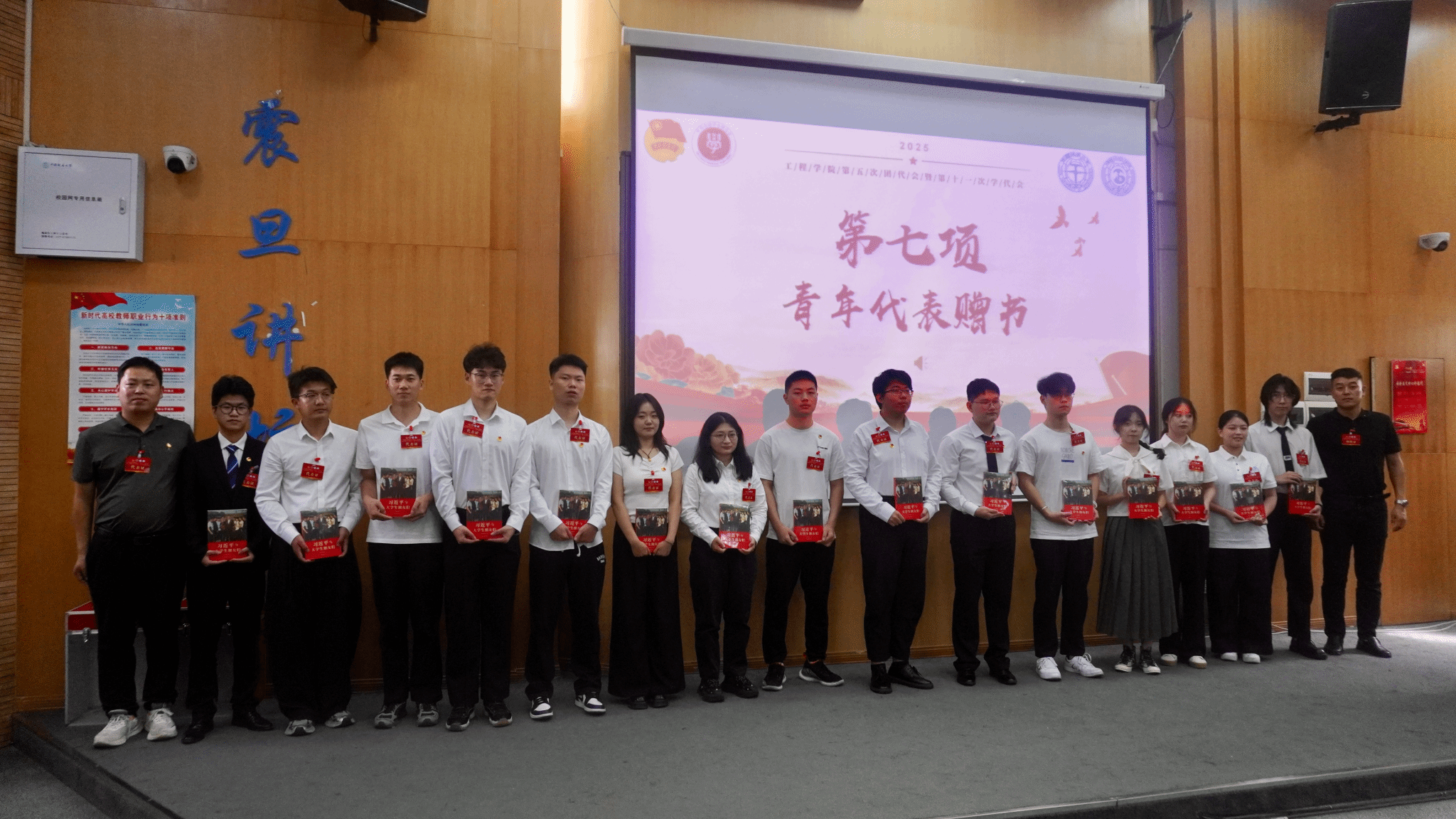 开云中国党委副书记高晓东和挂职团委副书记刘浩为今年在“五月的鲜花”2025年五四评优活动获奖的优秀青年和集体、开云中国“十大标兵学生”赠书。