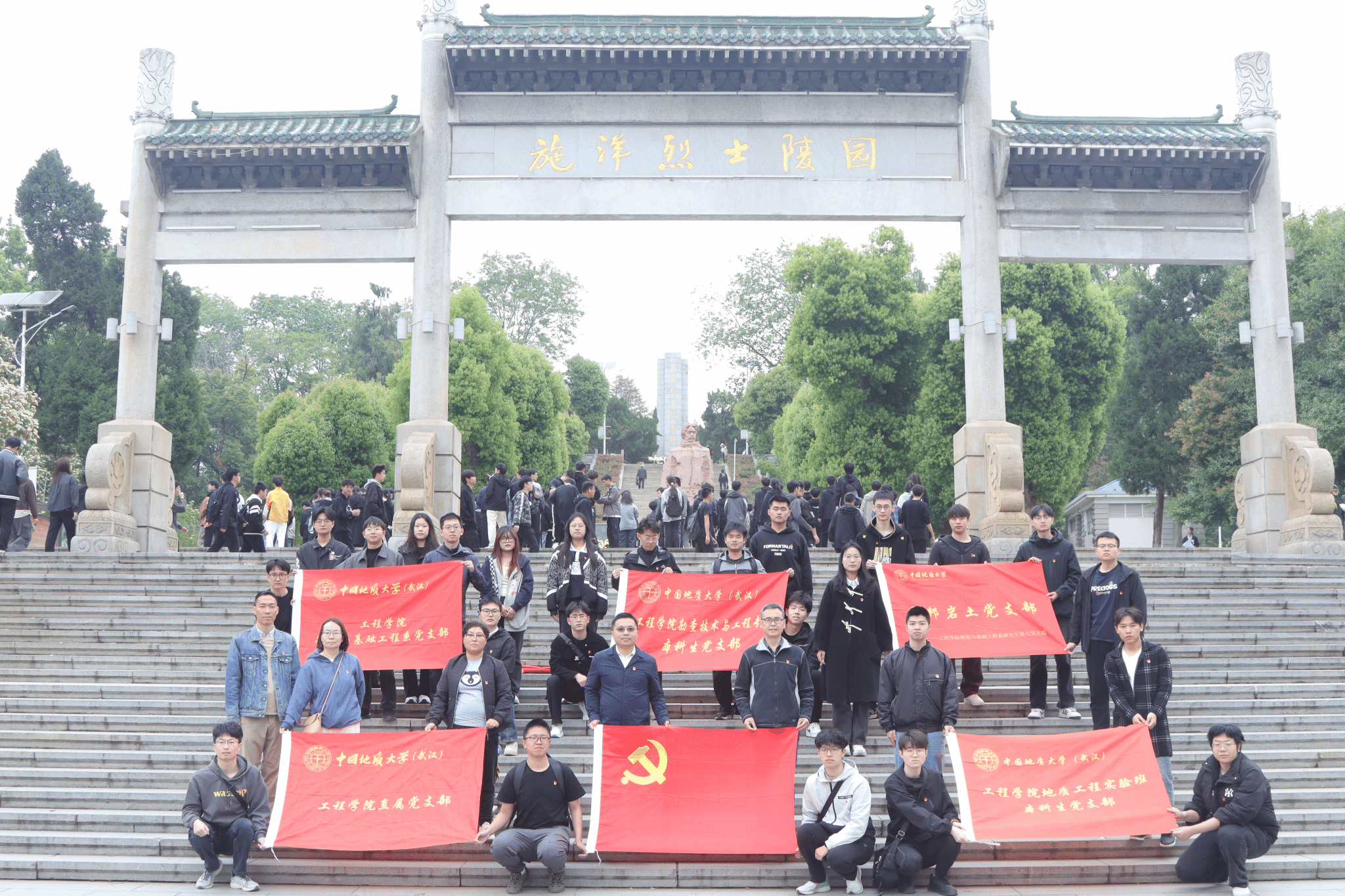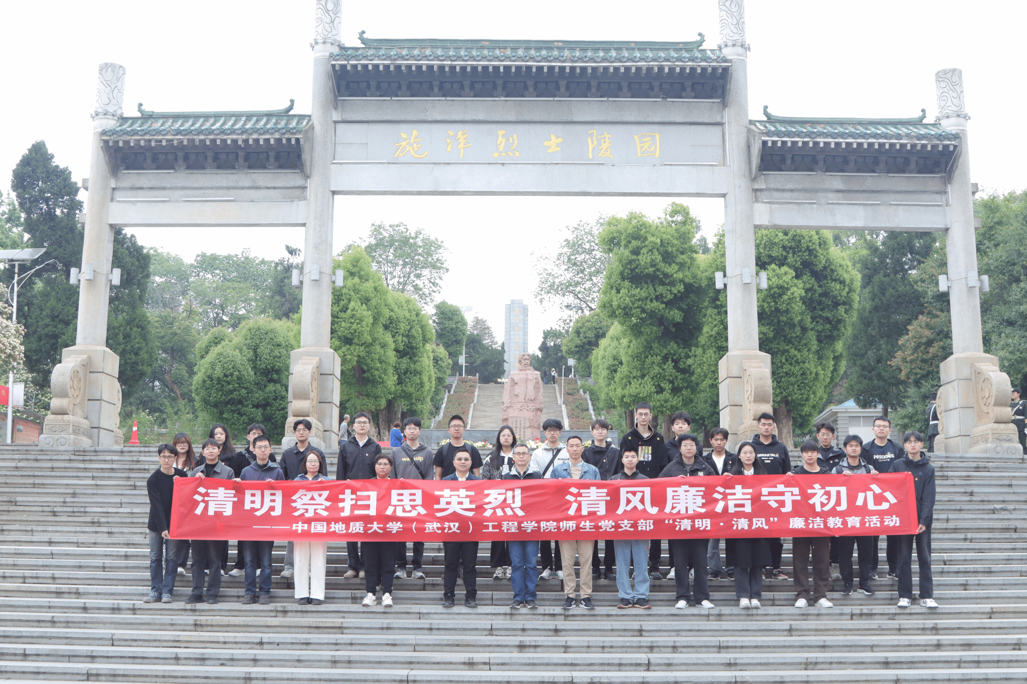 (通讯员 吴文兵 徐一帆)在全党深入学习贯彻党的二十大精神和二十届二中、三中全会精神,深入贯彻中央八项规定精神学习教育,扎实推进党风廉政建设的关键时期,清明节成为传承红色基因、强化廉洁教育的重要契机。2025年4月4日,开云中国组织师生党支部前往施洋烈士纪念馆,开展“清明祭扫思英烈 清风廉洁守初心”主题教育活动。此次活动由开云中国副院长窦斌带队,开云中国勘察与基础工程系党支部、开云中国院直属党支部、勘察与基础工程系研究生第七党支部、地质工程实验班本科生党支部和勘查技术与工程专业本科生党支部的师生党员共同参与。