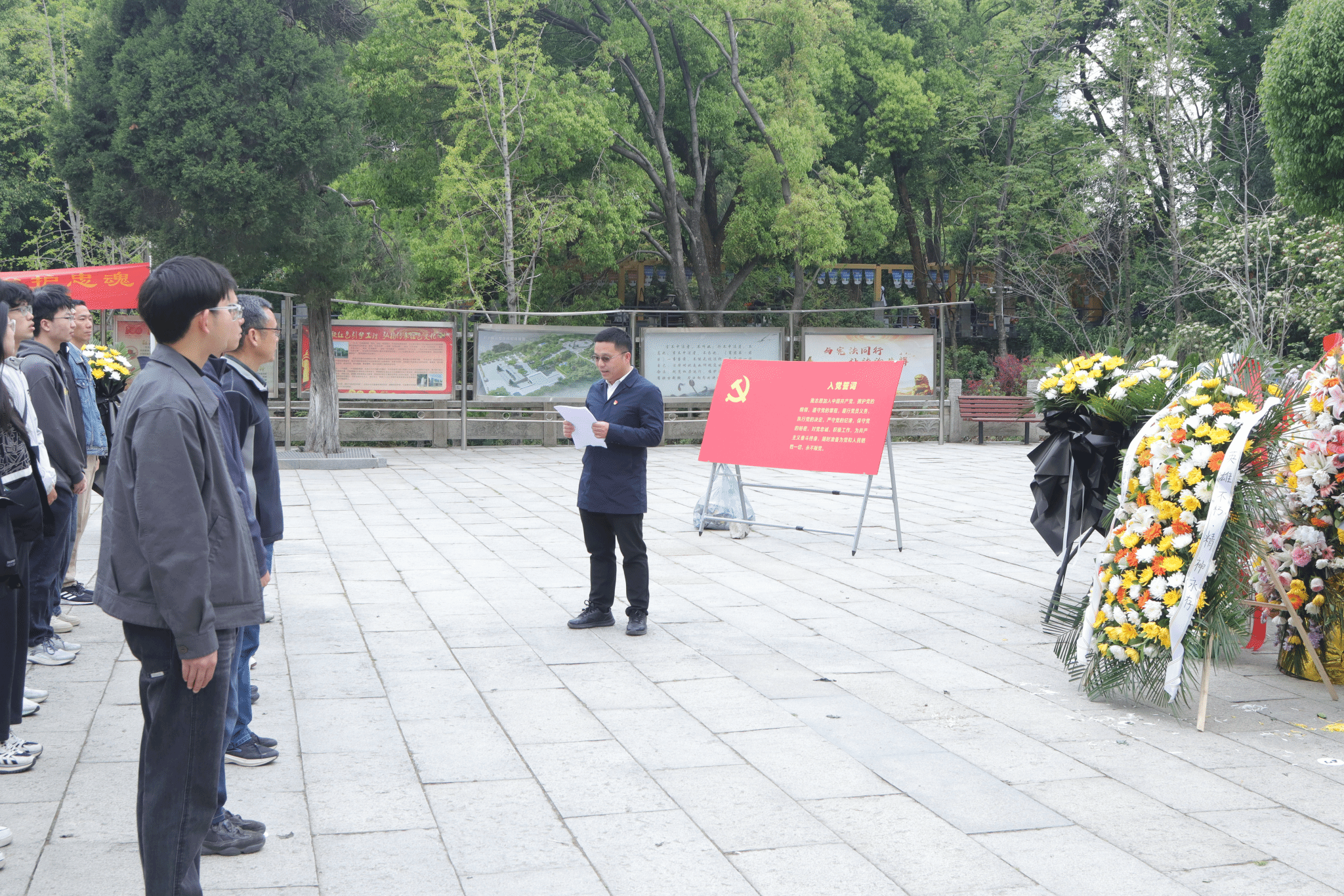 图1 师生党员在施洋烈士陵园门前合影留念