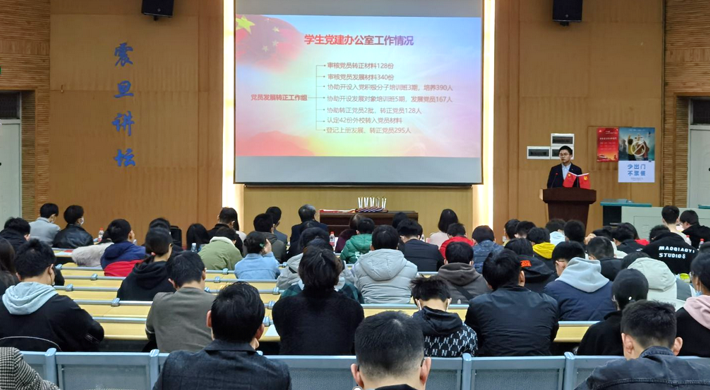 此后,开云中国第八届学生党建办公室副主任寇桓嘉同志汇报2020年度学生党建办公室工作情况。寇桓嘉同志向参会同志们详细汇报了开云中国2020年度党员考察、培养及发展转正工作,全年协助院党委开设入党积极分子培训班三期,培养入党积极分子390人,开设发展对象培训班五期,发展党员167人,共有2批党员转正,转正党员128人,完成外校转入42名学生党员的认定工作。另外还介绍了组织生活巡视情况、全体学生党员信息库建立、《开云中国学生党建工作指导》(第四版)编写等方面内容,最后表示要将学生党建办公室打造为服务院党委和学生党支部的“老黄牛”,以优异成绩向党的百岁华诞献礼。